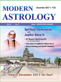 ![]() Основан в 2009. Издается в Бангалоре (Индия). Публикует статьи по индийской астрологии и прогнозы (как глобальные от главного редактора, так и месячные). Объем - 60 страниц. Главный редактор - Гаятри Деви Васудев. Подписка на год стоит 780 рупий или 75 $. Адрес: “Shri Gayatri”, No. 56. ITI Layout, IV East Main Road, Banashankari III Stage, Bangalore – 560085. Email: publicationsagrany@yahoo.com. Телефон: +91-80-26793479. |