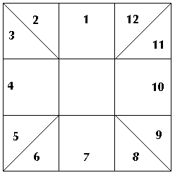 пространство между ними делилось на 12 треугольных секторов (12 домов),